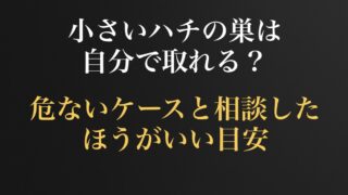 駆除 小さいハチの巣は自分で取れる?危ないケースと相談したほうがいい目安 小さいハチの巣は自分で取れるのか、不安な方向けに危ないケースと避けたい行動、相談したほうがいい目安を整理。ベランダ・軒下・玄関まわりで見つけたときの安全な対処法もわかります。 2026.04.19 駆除