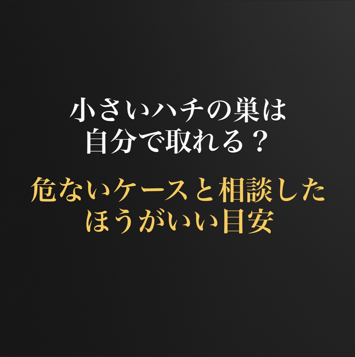 ハチの種類によって危険度や巣の作り方は違います。見た目だけで判断しようとして近づくほうが危ないことも多いです。